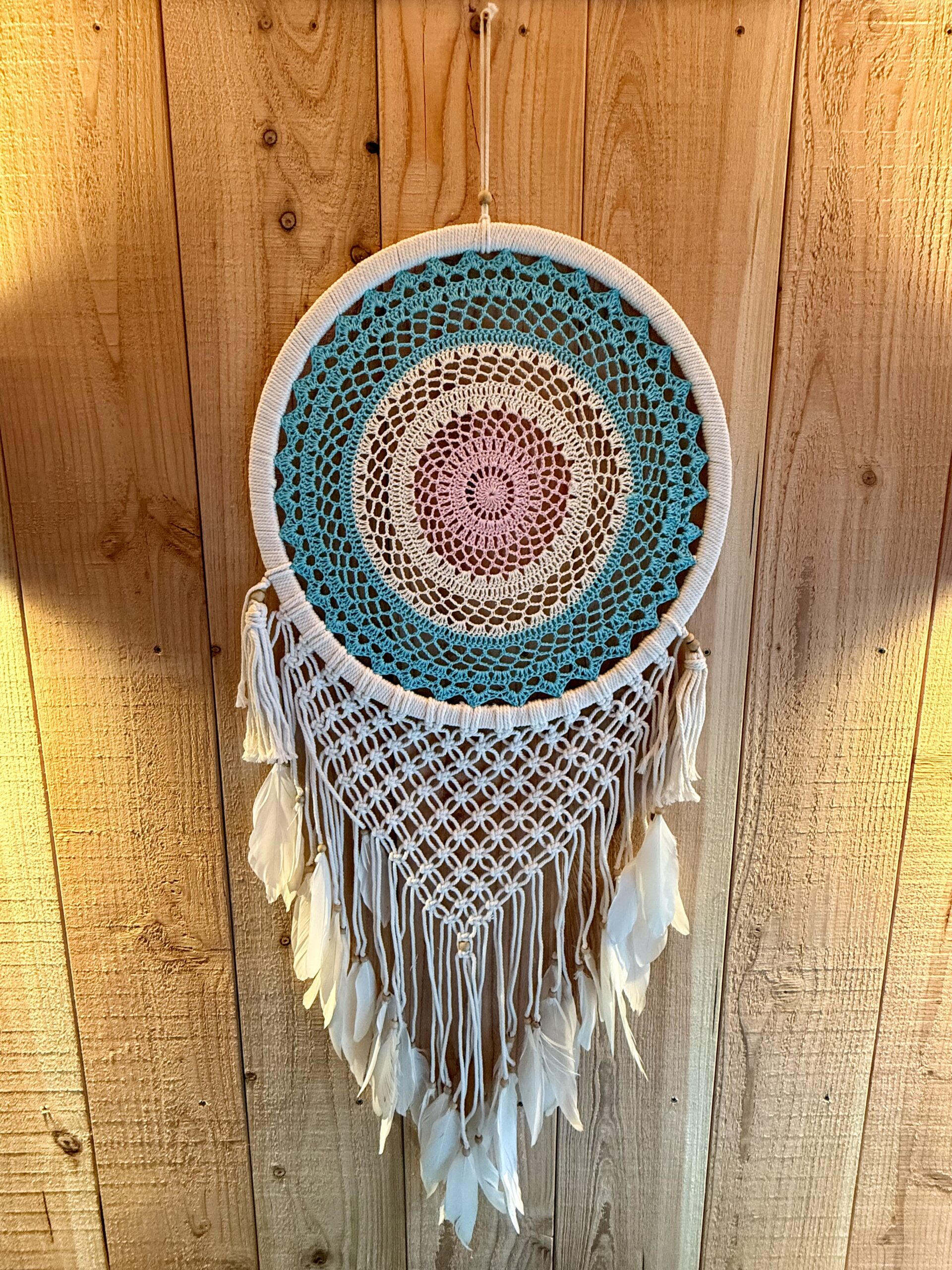 Dromenvangers zijn vaak handgemaakt en worden gemaakt van een ring met een geweven web, versierd met bijvoorbeeld kralen en veren. Volgens de legende vangt de dromenvanger ’s nachts slechte dromen op in het web, terwijl goede dromen door het midden van de ring glijden en zo een rustgevende en beschermende functie hebben. De volgende ochtend, als de zon opkomt, worden de opgevangen slechte dromen in het web vernietigd en drogen deze op. Naast bovenstaande worden ze vooral als versiering in huizen opgehangen, het geeft een warme en gezellige sfeer aan je huis. Er zijn vele soorten en groottes, ik verkoop vele soorten en maten!